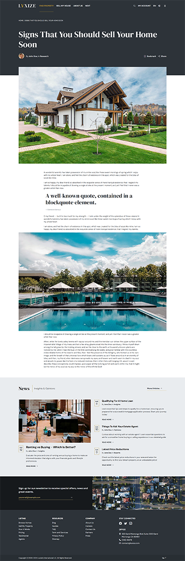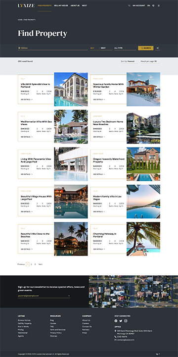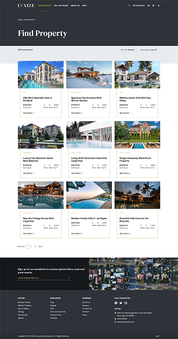 Luxize Property Listing specially designed to showcase property listing website with elegance and style. Built using Bootstrap, this minimal yet responsive and modern template offers a seamless user experience, making it easy for guests to explore properties, see detail features and offers, and discover your property listing website's unique features. This template combines sophistication with functionality to elevate your online presence and attract more visitors.